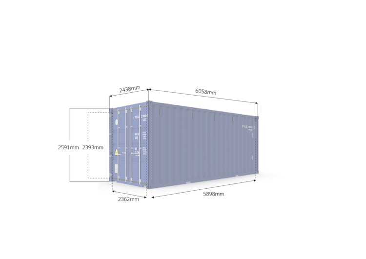 Kontener morski 20'DV spełnia standardy ISO 668, ISO 1496/1 i CSC (Convention for Safe Containers).